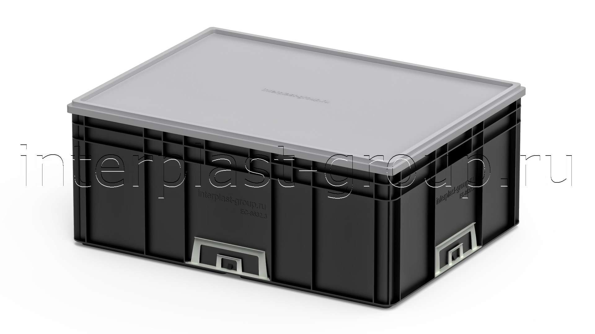 Евроконтейнер открытые ручки/усиленное дно (черный), 800x600x320 мм