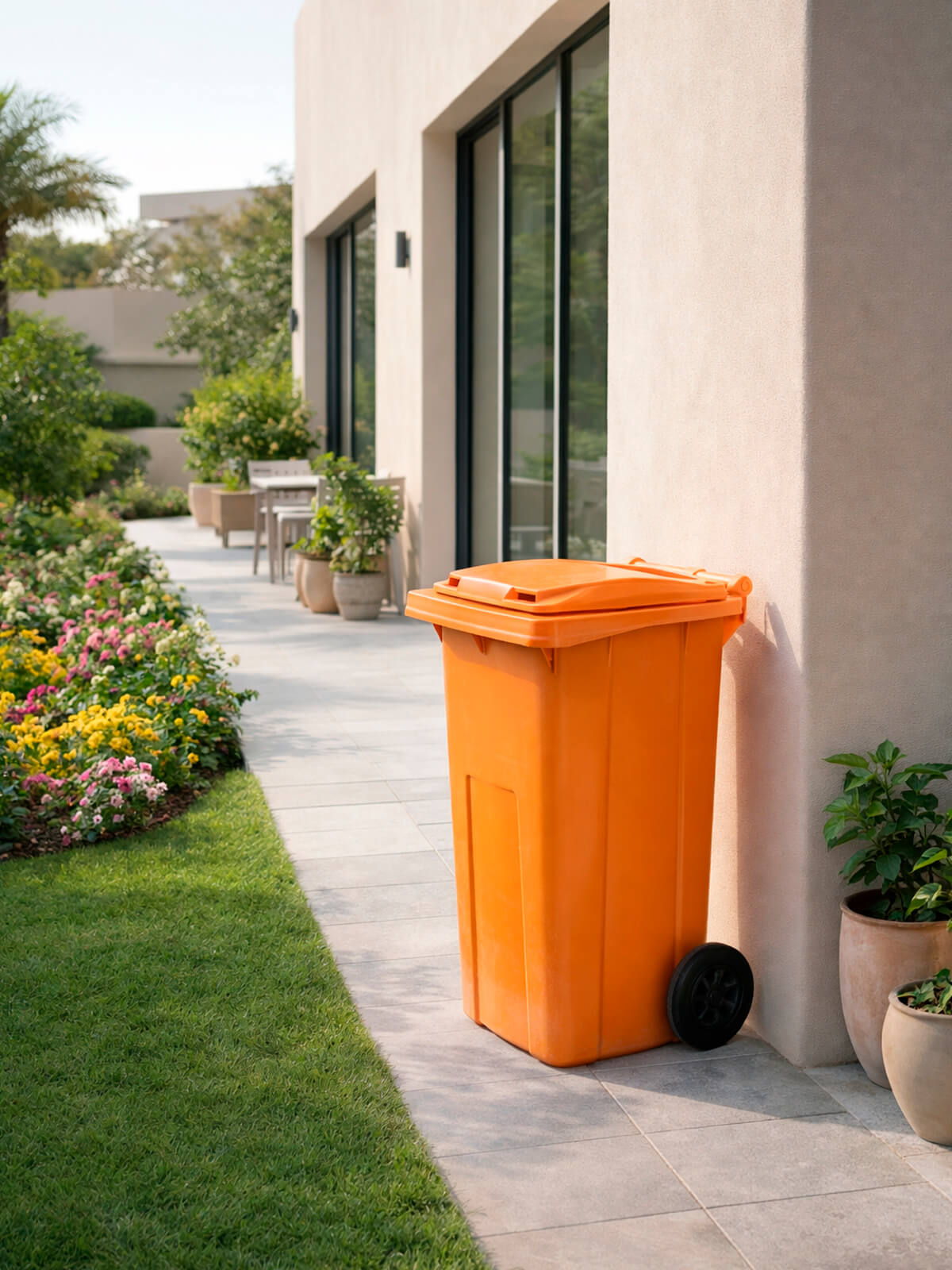 Оранжевый контейнер для мусора 120 л — это решение, созданное для объектов, где важны высокая видимость, порядок и структурированный сбор отходов. Такой мусорный контейнер уличный часто используют на производственных территориях, в коммунальных службах, на стройплощадках, парковочных зонах и в частном секторе, где требуется контрастная маркировка.
