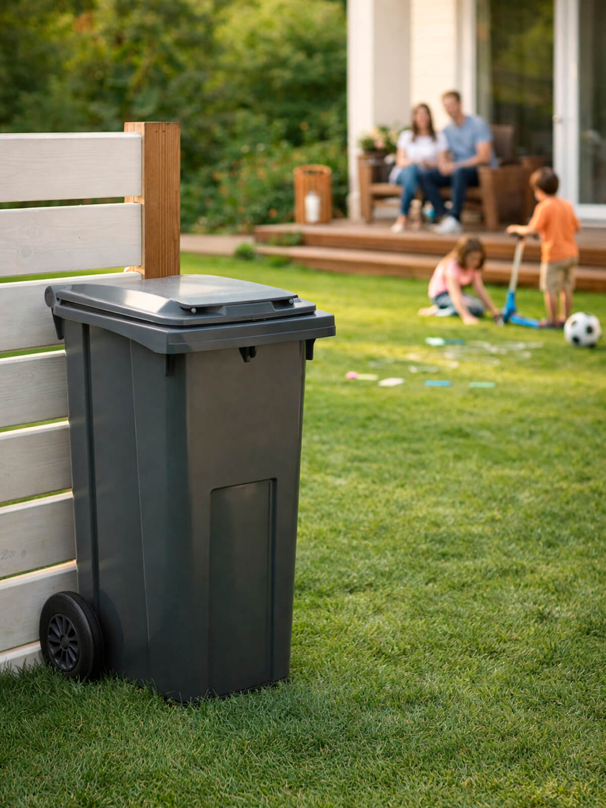 Серый контейнер для мусора 120 л — практичное решение для домовладений, дворов многоквартирных домов, ТСЖ, предприятий и муниципальных объектов. Нейтральный серый цвет традиционно используется для смешанных и твёрдых бытовых отходов, поэтому такой мусорный контейнер уличный идеально подходит для городских дворов и коммерческих объектов.