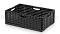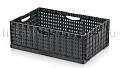 Складные ящики разработаны и спроектированы для хранения и перемещения плодо-овощных культур как внутри производства, так и между торговыми точками и складами. Благодаря функции складывания значительно экономят место при использовании в качестве возвратной тары. Перфорированные стенки обеспечивают сохранение свежести и сочность продуктов перфорации абсолютно на всех стадиях логистики. Штабелируются на паллетах 1200х1000 и 1200х800.